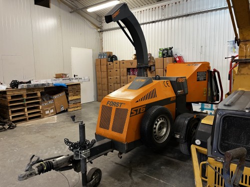 Eladó Först ST6 típusú faaprítógép, újszerű azonnal munkára fogható állapotban. Darálási vastagság max. 17x21cm. Meghajtó motor 4hengeres Kubota dízelmotor 40LE. Üzemóra: 1359. Az áraink nettó árak.